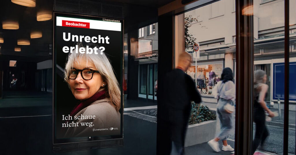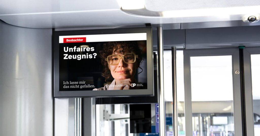 Alle Themen, die Menschen bewegen und jetzt auch dort, wo sie unterwegs sind. Ab sofort sind auch Beobachter-Inhalte auf Livesystems-Digital-Screens in der Deutschschweiz zu sehen. Das Angebot ergänzt die bisherigen Blick-News-Inhalte um Service-Themen über Gesetz und Recht, Konsum und Arbeit. Direkt aus der Beobachter-Redaktion: Praxisnah, verlässlich und relevant.